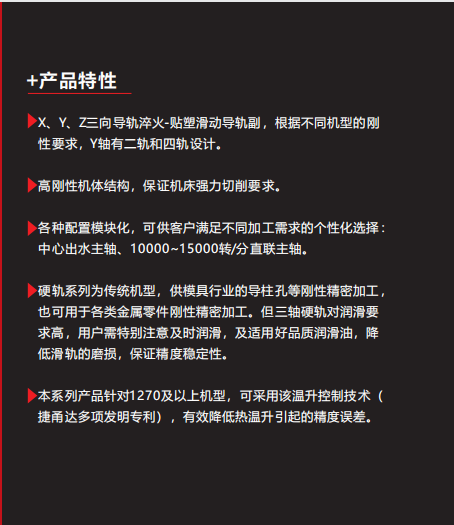 柱孔等剛性精密加工,也可用于各類金屬零件剛性精密加工。但三軸硬軌對潤滑要求高,用戶需特別注意及時潤滑,